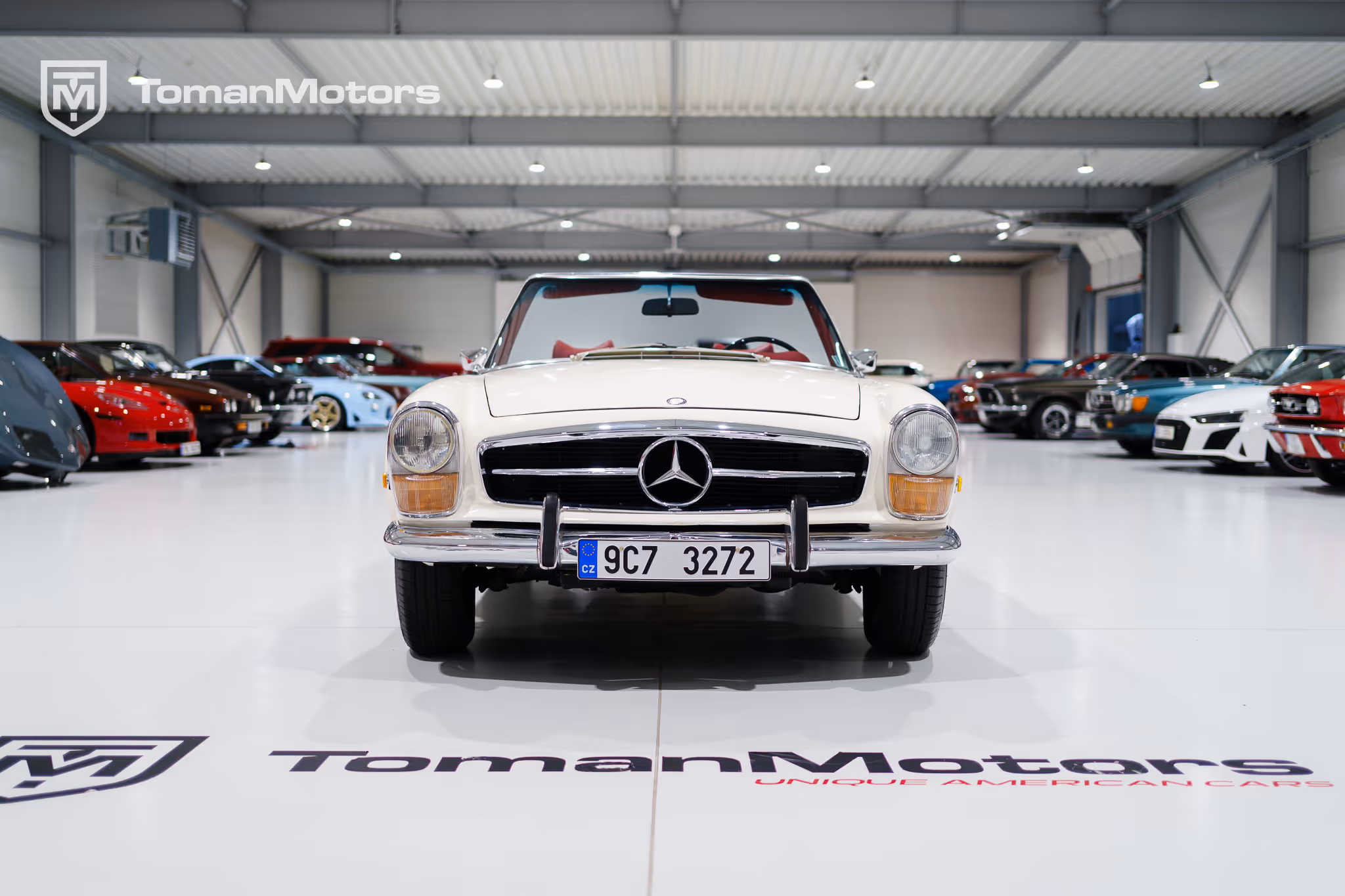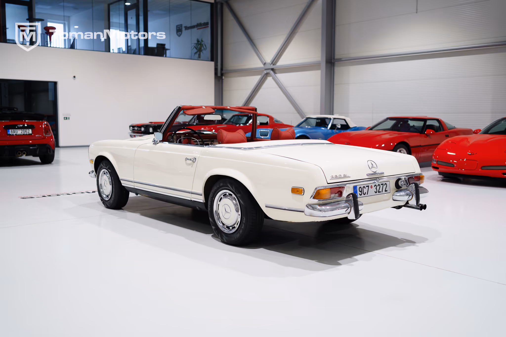 Mercedes Benz 280SL kabrio, po dřívější povedené renovaci v Itálii.